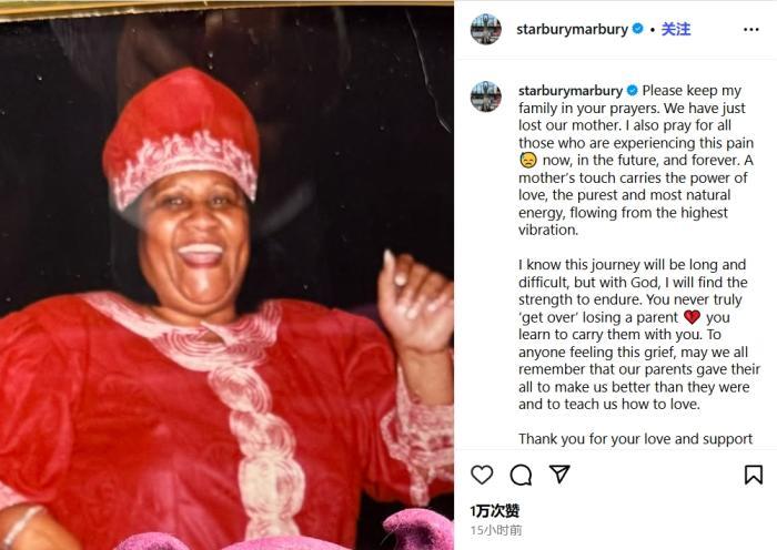 馬布里寫(xiě)道:“請(qǐng)為我的家人祈禱,我們剛剛失去了母親。我也為所有正在經(jīng)歷這種痛苦的人們祈禱,無(wú)論是現(xiàn)在、將來(lái),還是永遠(yuǎn)。母親的撫摸蘊(yùn)含著愛(ài)的力量,那是最純粹、最自然的能量。”