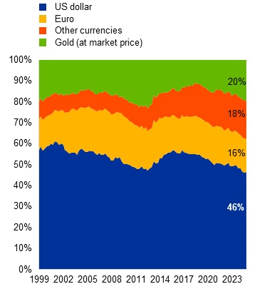 當(dāng)?shù)貢r(shí)間6月11日,歐洲央行發(fā)布題為《歐元的國(guó)際地位》的年度報(bào)告。報(bào)告指出,2024年美元在世界各國(guó)外匯儲(chǔ)備中占比46%,比前一年小幅下降。