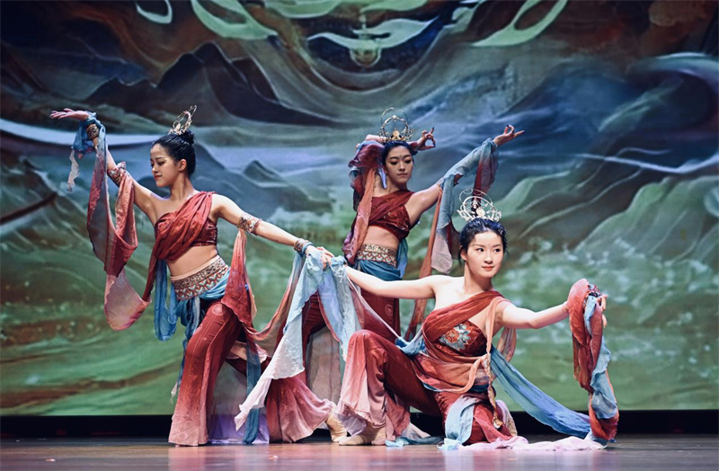 沈陽音樂學(xué)院帶來的三人舞《石窟·日月》。新加坡中國文化中心供圖