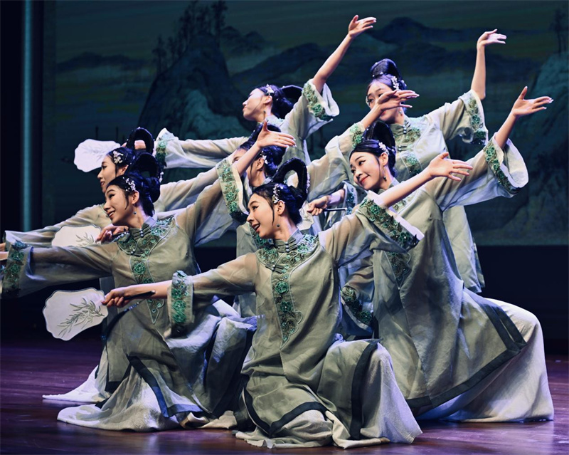 中國古典舞女子群舞《清風(fēng)徐來》。新加坡中國文化中心供圖
