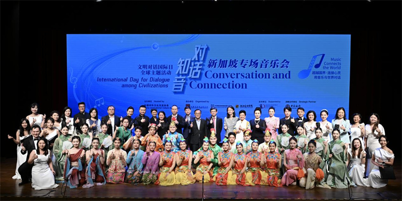 “對(duì)話·知音”——文明對(duì)話國際日新加坡專場(chǎng)音樂會(huì)謝幕合影。新加坡中國文化中心供圖