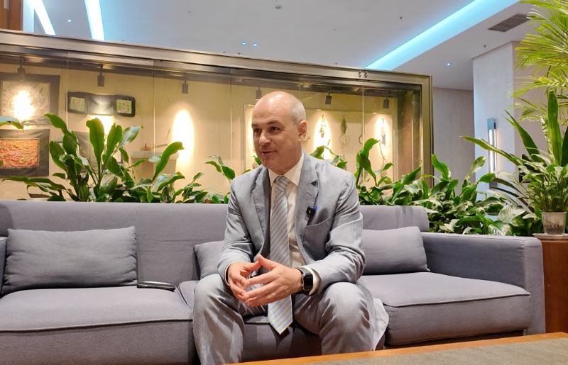 6月11日,阿根廷駐華大使馬致遠(yuǎn)在遼寧省盤錦市接受新華網(wǎng)記者專訪。新華網(wǎng)記者 祁文麗 攝