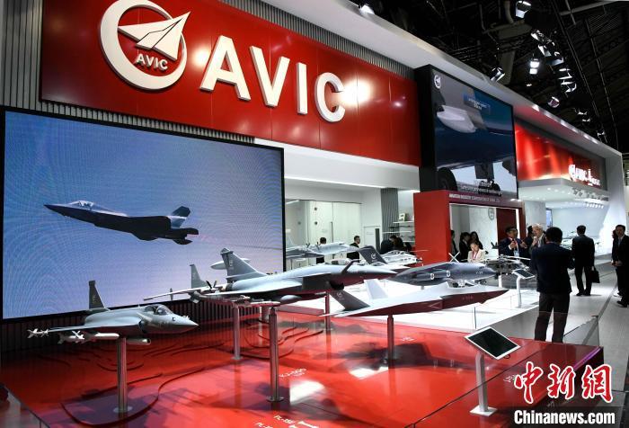 當(dāng)?shù)貢r(shí)間6月16日,第55屆巴黎航展揭幕。中國(guó)航空產(chǎn)品在本屆航展集中亮相。圖為中國(guó)航空工業(yè)集團(tuán)展區(qū)。中新社記者 李洋 攝