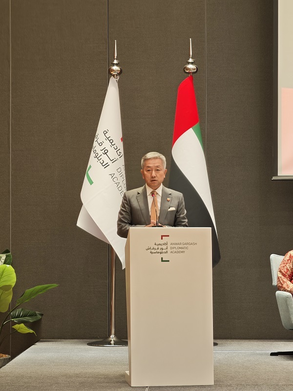 中國駐阿聯(lián)酋大使張益明致辭。中國駐阿聯(lián)酋大使館供圖