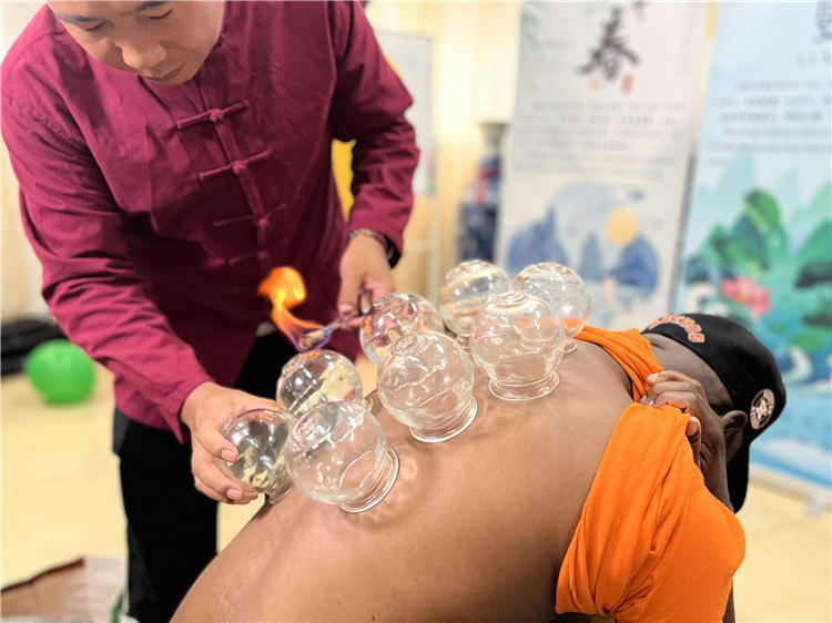 在中國(guó)傳統(tǒng)文化體驗(yàn)環(huán)節(jié),來賓們親手參與漆畫書簽制作,感受工藝之美;中醫(yī)傳統(tǒng)技術(shù)展示更引起當(dāng)?shù)孛癖姖夂衽d趣,中醫(yī)診脈、艾灸等體驗(yàn)活動(dòng)受到熱烈歡迎,醫(yī)療隊(duì)成員耐心講解,推動(dòng)中醫(yī)藥文化“走出去”。