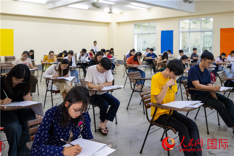 6月22日,當(dāng)?shù)貙W(xué)生在仰光大學(xué)參加漢語水平考試(HSK)。人民網(wǎng)記者 謝佳君攝