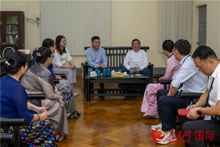 6月22日,中國駐緬甸大使館李千國參贊與仰光大學(xué)校長丁貌通等座談交流。人民網(wǎng)記者 謝佳君攝