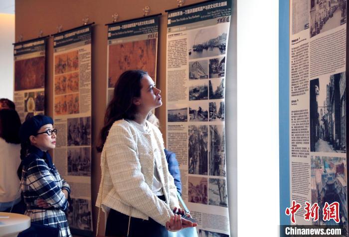 當地時間6月23日,“從茶園到茶港——萬里茶道建筑遺產與茶文化雙主題展”在莫斯科中國貿易中心舉行。圖為俄羅斯青年學生參觀展覽。中新社記者 田冰 攝