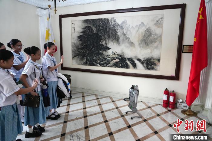一走進使館大廳,一臺宇樹科技機器人便上前“作揖迎賓”,不少菲律賓青年一時愣住,隨后紛紛揮手回應?!斑@太酷了!”中學生杰爾尼興奮地對同伴說。