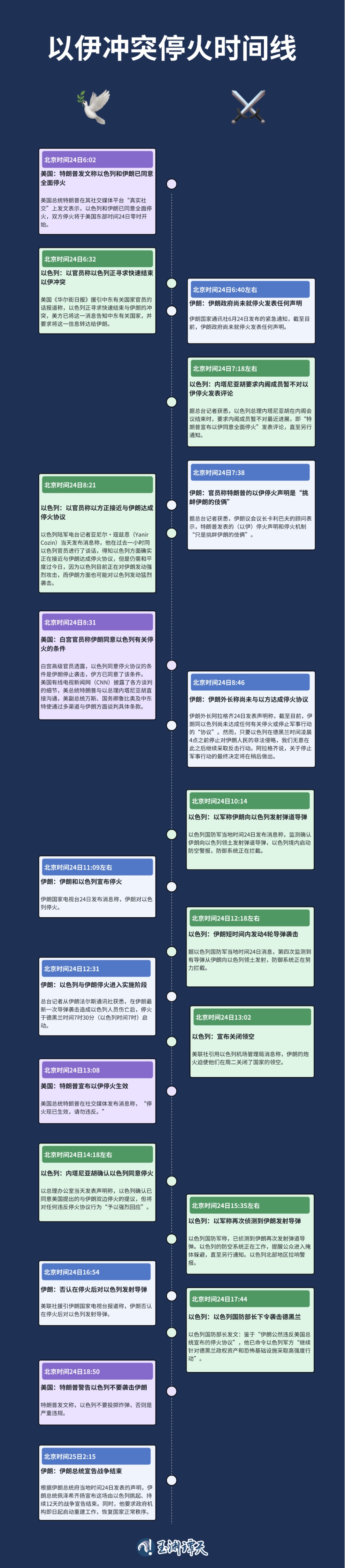 譚主梳理了美國(guó)、伊朗、以色列三方相關(guān)表態(tài)的時(shí)間線: