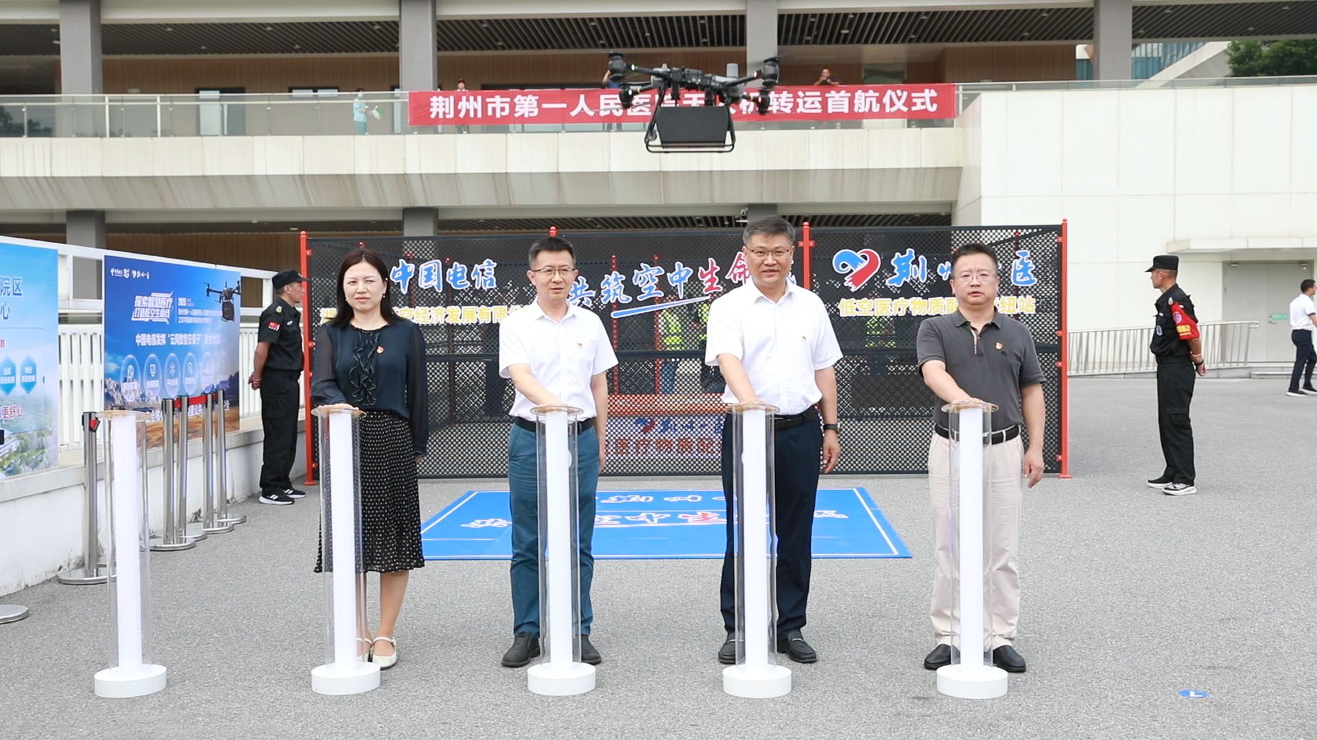 當天下午4點整,荊州一醫(yī)在新院區(qū)舉行簡短的首飛儀式,隨著中國電信荊州分公司總經(jīng)理劉濟文、中國電信荊州分公司副總經(jīng)理李啟文與荊州市第一人民醫(yī)院黨委書記李茂坤、荊州市第一人民醫(yī)院院長孫亞凌共同按下啟動鈕,一架承載著病理標本的無人機騰空而起,飛向總院病理中心,經(jīng)過嚴格設(shè)計的航線,穩(wěn)穩(wěn)降落在總院停機坪。此次成功試飛,?一舉打通了醫(yī)院兩院區(qū)之間的“空中生命通道”?,并?開創(chuàng)了江漢平原地區(qū)三甲醫(yī)院應(yīng)用無人機轉(zhuǎn)運標本的先河?。