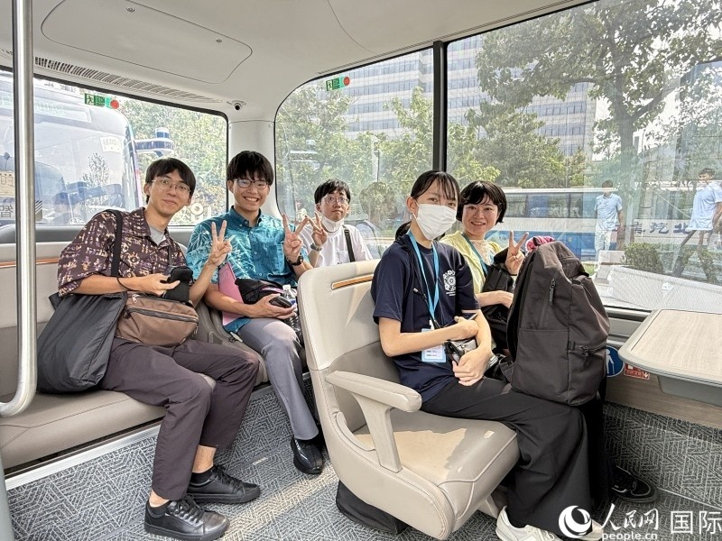 沖繩大學(xué)生訪華團(tuán)試乘無人駕駛小巴。人民網(wǎng)記者 陳思攝