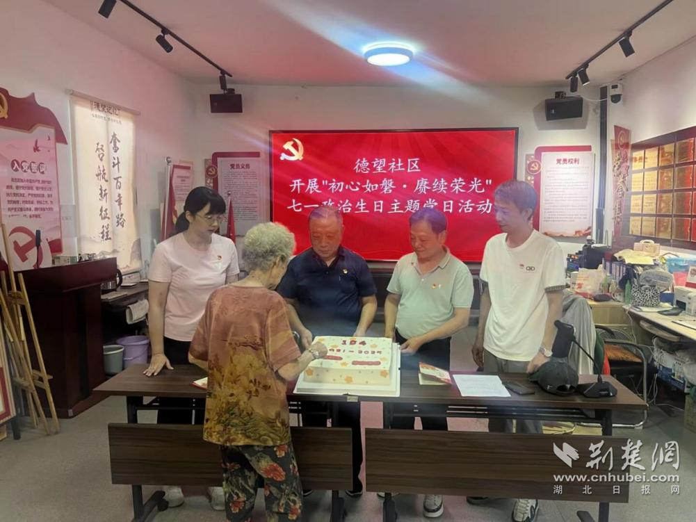 在德望社區(qū),一場(chǎng)主題為“初心如磐?賡續(xù)榮光”的主題活動(dòng)溫情上演。黨員們高舉右拳,面對(duì)黨旗莊嚴(yán)宣誓;不久后,一塊寫著“慶祝中國共產(chǎn)黨成立104周年”的蛋糕被緩緩?fù)瞥?,生日蠟燭點(diǎn)亮的不只是節(jié)日氛圍,更是一份莊重的身份認(rèn)同。