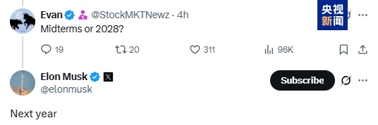 在這條宣布成立的帖文下,有網(wǎng)友問他的新政黨是否會參加2026年中期選舉或2028年的總統(tǒng)選舉時,馬斯克回復(fù)稱,“明年”。