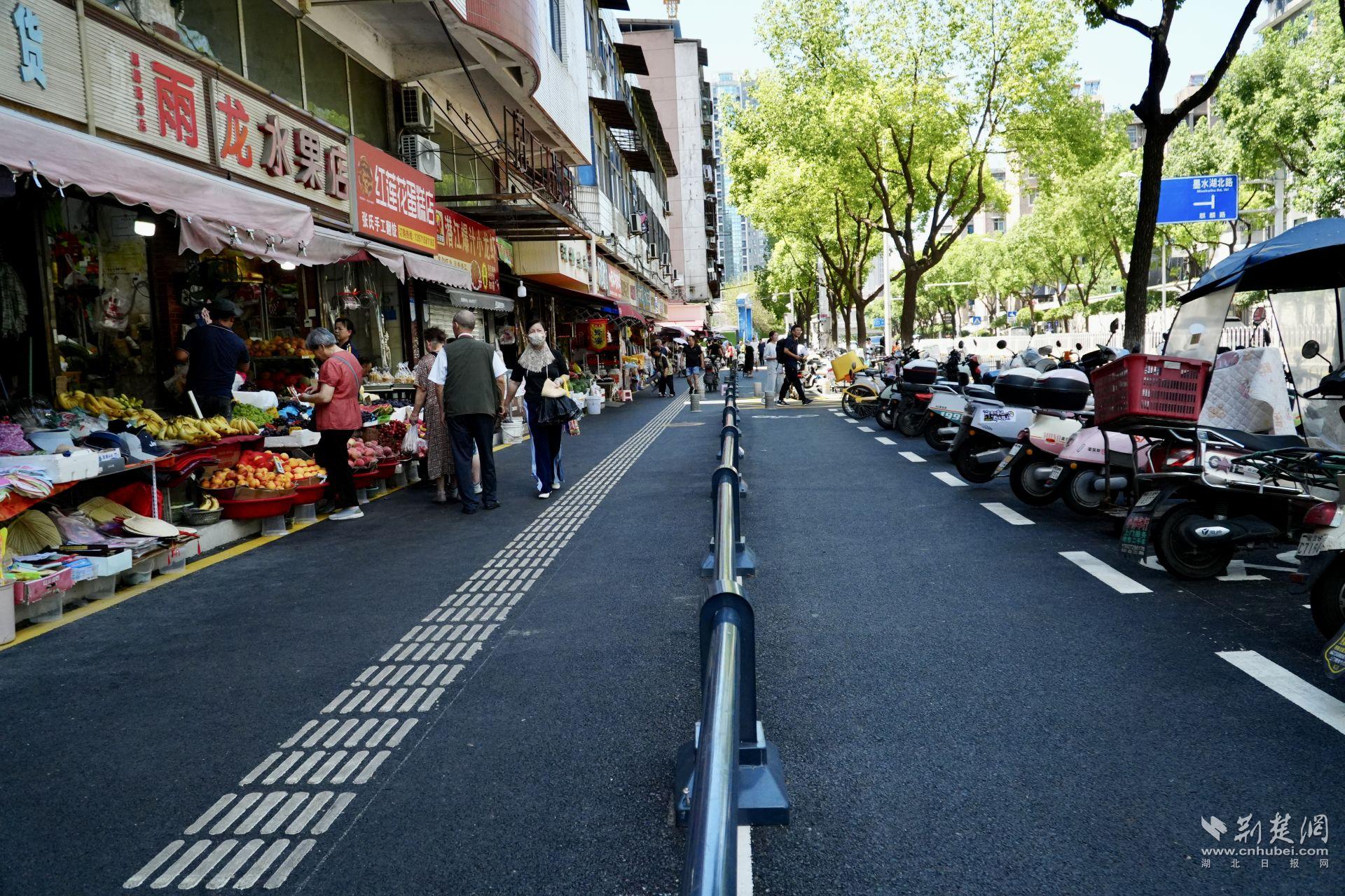現(xiàn)在,瀝青路面平整干凈,人行道、非機(jī)動(dòng)車(chē)道清晰分隔;370米護(hù)欄有效實(shí)現(xiàn)人車(chē)分流;桂花樹(shù)與香樟樹(shù)點(diǎn)綴街頭,市場(chǎng)顏值大大提升。而市場(chǎng)外圍的“外擺線”,也讓攤販有序經(jīng)營(yíng)、秩序井然。