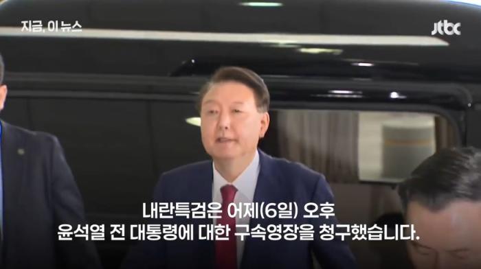 尹錫悅到案接受內(nèi)亂特檢調(diào)查。圖片來(lái)源:韓媒JTBC報(bào)道截圖