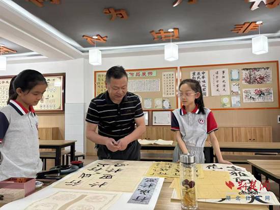 “黃梅戲課堂十分火熱,學(xué)校的書法教學(xué),也遠(yuǎn)近聞名,小有成就?!标惖┙榻B,近年來,教師鄧桂華、何術(shù)老師獲得湖北省書法比賽金獎(jiǎng);學(xué)生魯駿哲、朱源鍇獲得湖北省書法比賽金獎(jiǎng);學(xué)校獲得“湖北省蘭亭學(xué)校”稱號。