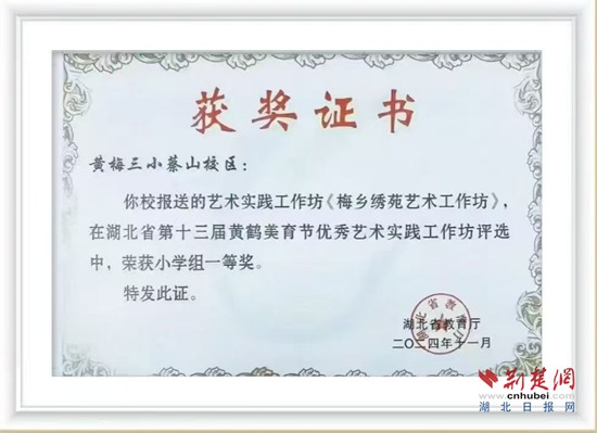 “讓孩子們從小學(xué)習(xí)挑花技藝,不能讓傳統(tǒng)技藝失傳,同時(shí)通過挑花活動(dòng)培養(yǎng)孩子們靜下心來專注做事的良好品質(zhì)?!蓖趺粽f。2024年秋,學(xué)?!懊粪l(xiāng)繡苑”挑花工作坊帶著師生挑繡的作品參加湖北省第十三屆黃鶴美育節(jié),榮獲藝術(shù)實(shí)踐工作坊一等獎(jiǎng)。