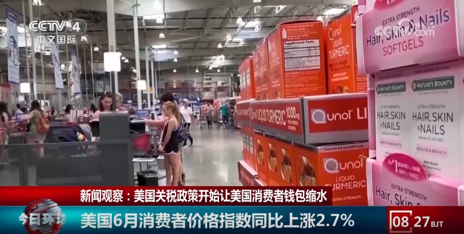 央視網(wǎng)消息:美國政府7月15日公布的6月消費者價格指數(shù)出現(xiàn)2月以來的最大同比漲幅。按照美媒的說法,這表明美國總統(tǒng)特朗普施行的關稅政策讓美國民眾承壓,普通美國消費者的錢包開始縮水。