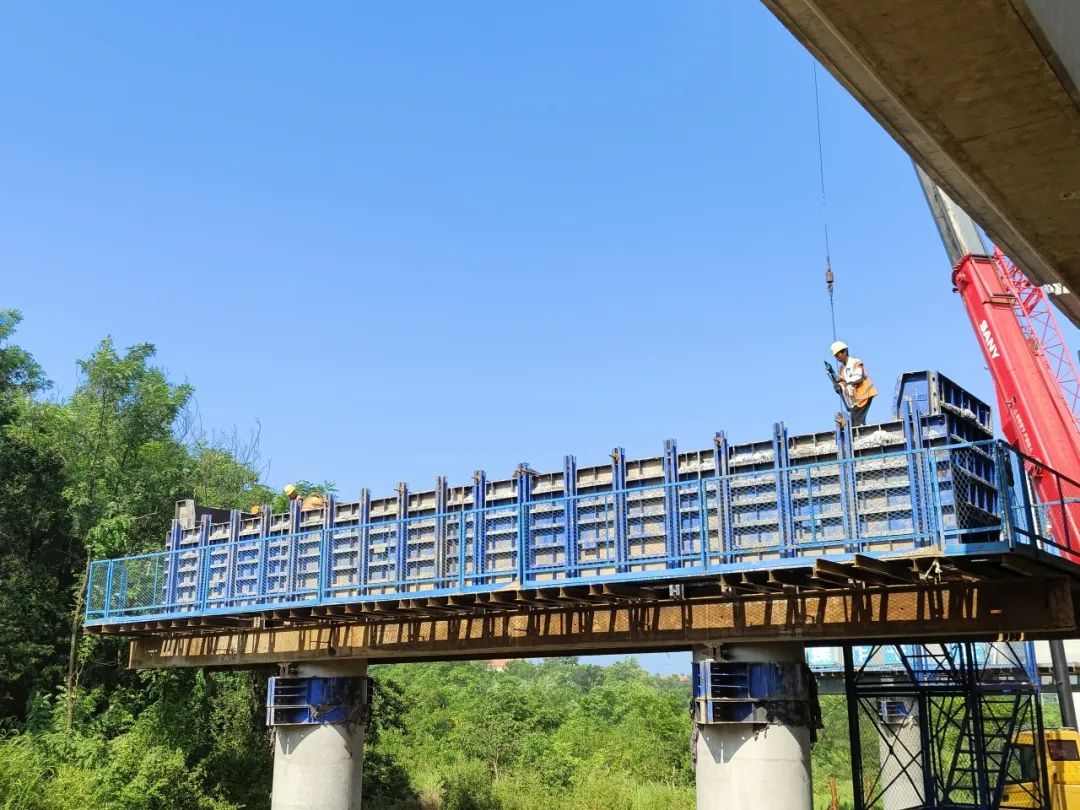 位于王家河街的鳳凰山大橋全長840米,自5月20日啟動架梁施工以來,建設(shè)團(tuán)隊面對高溫、雨季等多重挑戰(zhàn),通過優(yōu)化施工方案、增加夜間作業(yè)班次,將工期壓縮了10天,提前完成140片箱梁架設(shè)任務(wù)。當(dāng)天,記者在施工現(xiàn)場看到,大橋左幅預(yù)制箱梁已全部架設(shè)完成,實現(xiàn)左幅貫通。