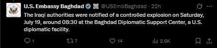 圖片來源:美國(guó)駐伊拉克巴格達(dá)大使館在其社交媒體賬戶截圖