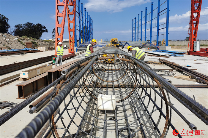 突尼斯比塞大大橋項(xiàng)目施工現(xiàn)場(chǎng)。人民網(wǎng)記者 薛丹攝