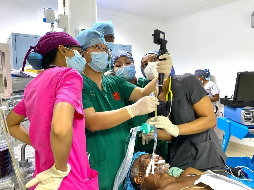 這項新技術(shù)吸引了該院麻醉科多位醫(yī)生現(xiàn)場觀摩。杜伯祥演示了關(guān)鍵步驟,并對技術(shù)原理、適應(yīng)癥把握及操作要點等進行現(xiàn)場講解。該院醫(yī)生卡諾表示:“中國醫(yī)療隊持續(xù)為我們打開新技術(shù)的大門,這次演示清晰實用,是提升本地麻醉實踐能力的寶貴一課。”
