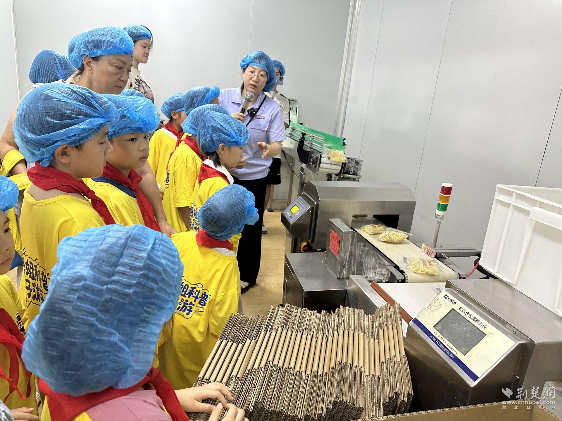 在包裝車間,小朋友們又見證了一袋袋包裝完整的熱干面被整齊放入打包箱,送上傳輸帶,通過流通環(huán)節(jié),讓更多消費(fèi)者品嘗到武漢特色美食。