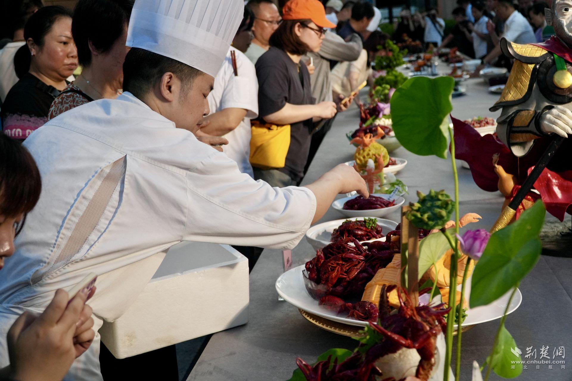 荊楚網(wǎng)(湖北日報(bào)網(wǎng))訊(記者 何婧 實(shí)習(xí)生 陳靖南 通訊員 羅驗(yàn))雕刻小龍蝦模樣的菜肴已不足為奇,把小龍蝦做成“荔枝”才真的讓人眼前一亮。7月23日晚,“來漢口 逛江漢—江漢區(qū)小龍蝦烹飪技能大賽”精彩開賽。