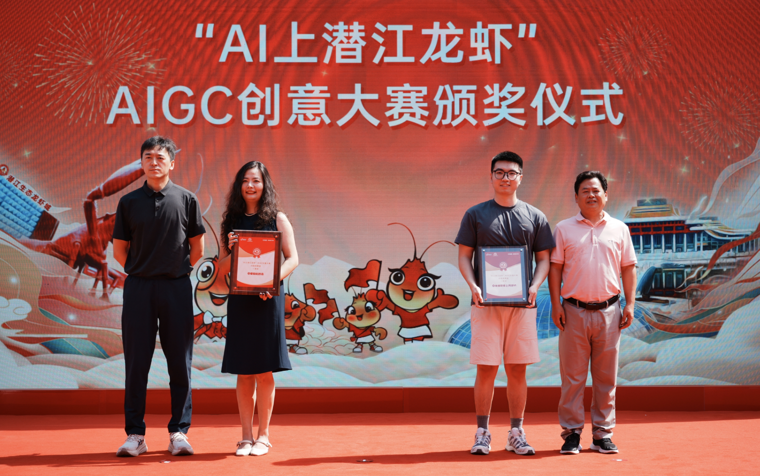 活動現(xiàn)場揭曉“AI上潛江龍蝦”AIGC創(chuàng)意大賽獲獎名單。