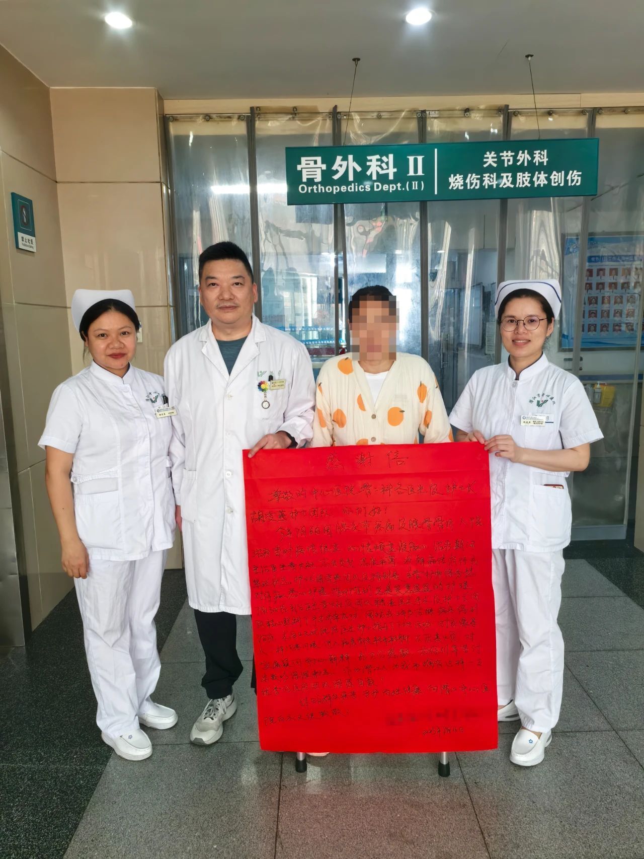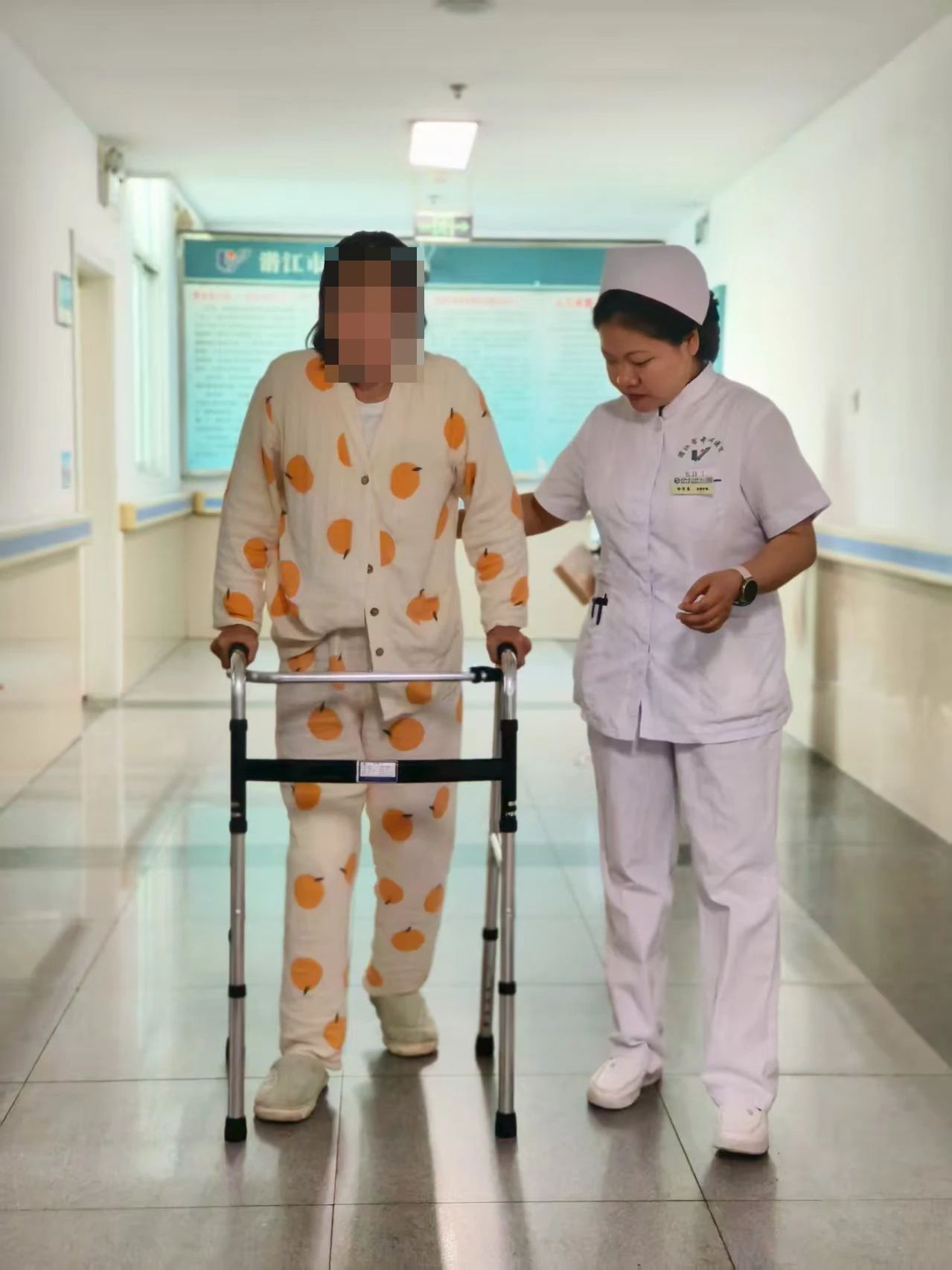 手術(shù)過程非常順利,在骨外科Ⅱ醫(yī)生團隊精湛的技術(shù)操作下,成功將王女士受損的膝關(guān)節(jié)置換為合適的人工關(guān)節(jié)假體。術(shù)后,護理團隊立即介入,為其量身定制了個性化康復(fù)方案。在醫(yī)護人員指導(dǎo)下,王女士術(shù)后當天即開始了踝泵運動和股四頭肌收縮練習,第二天則進行了屈膝、直腿抬高等功能訓(xùn)練。令人欣喜的是,術(shù)后第三天,王女士已能在助行器的輔助下下床行走,這一進展讓王女士及其家人驚喜不已。