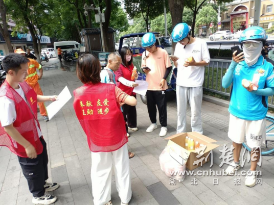 荊楚網(wǎng)(湖北日報網(wǎng))訊(記者 何婧 實習(xí)生 陳靖南 通訊員 徐鼎)烈日炎炎,關(guān)愛不缺席。7月25日,武漢高溫持續(xù),江漢區(qū)北湖街道妙三社區(qū)湖錦酒樓“暖新驛站”前人氣高漲,“炎炎夏日送清涼,絲絲關(guān)愛暖心房”主題慰問活動在此熱情開啟,為一線戶外工作者送上清涼包物資,帶來一份及時的守護(hù),也送去一座城市的溫度。