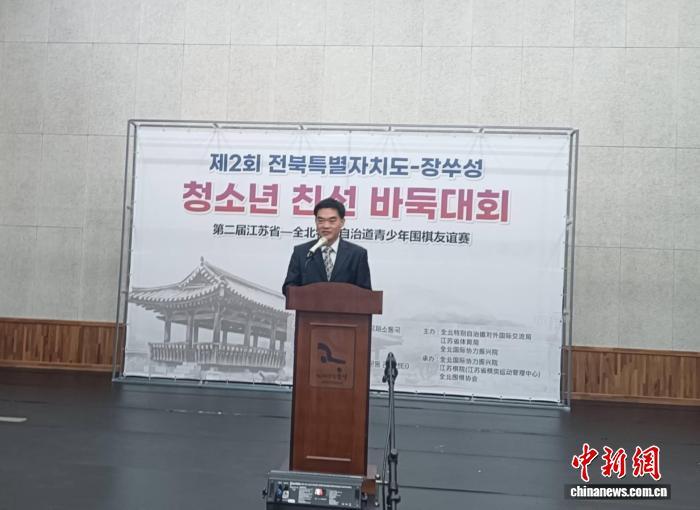 當?shù)貢r間7月29日,第二屆江蘇省—全北特別自治道青少年圍棋友誼賽在韓國全州市舉行。圖為中國駐光州總領事顧景奇致辭。中國駐光州總領事館 供圖