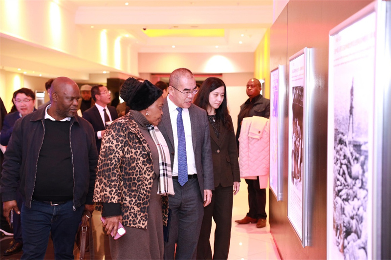 圖為與會嘉賓共同參觀中國人民抗日戰(zhàn)爭暨世界反法西斯戰(zhàn)爭勝利80周年圖片展。中國駐約翰內(nèi)斯堡總領(lǐng)館供圖
