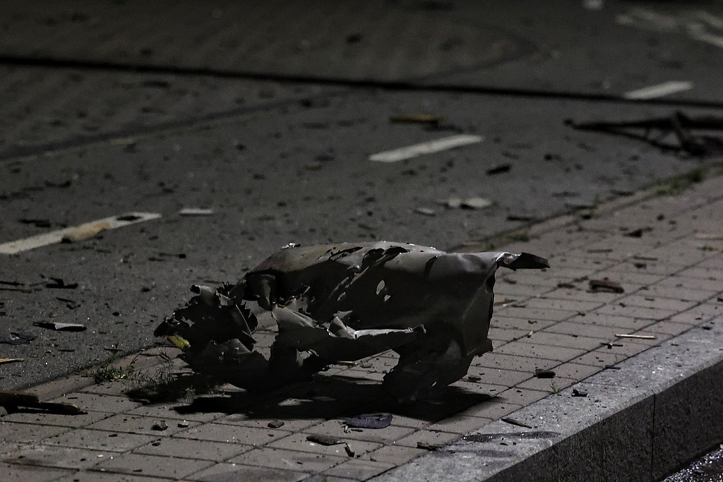 △烏克蘭基輔,地面上的俄羅斯無人機殘骸。