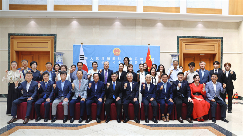 圖為與會人員合影。中國駐釜山總領(lǐng)事館供圖