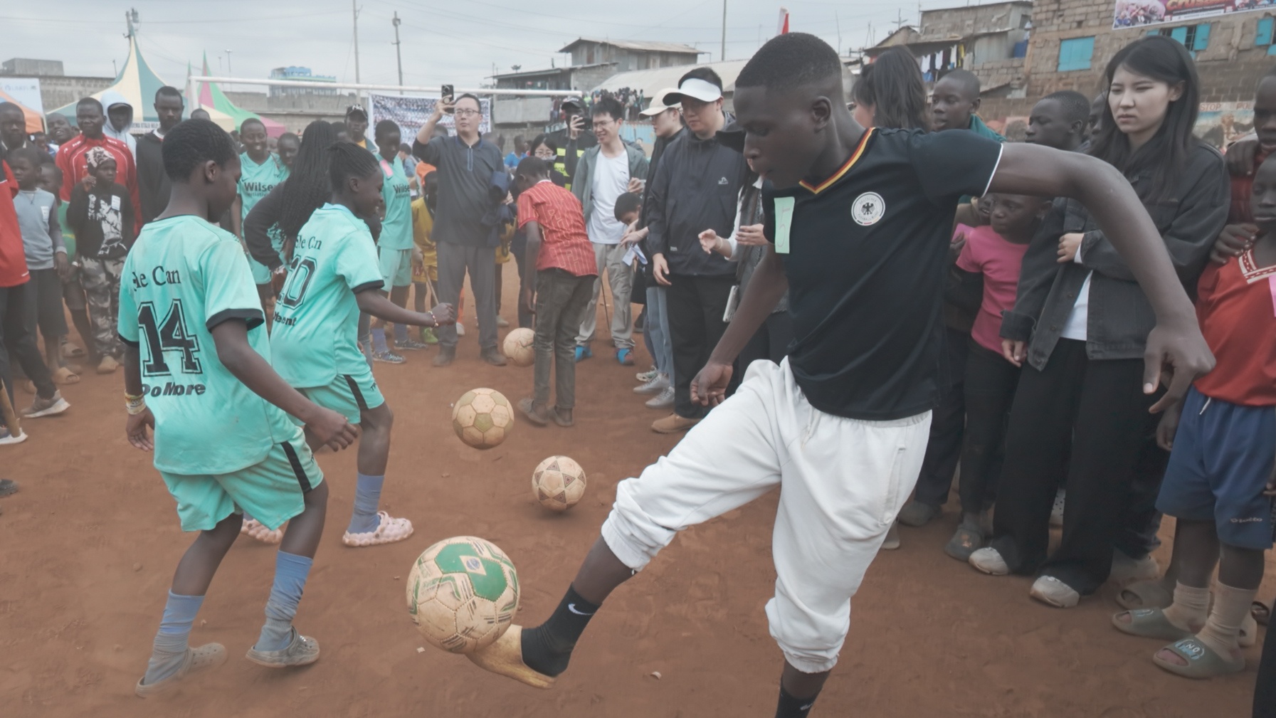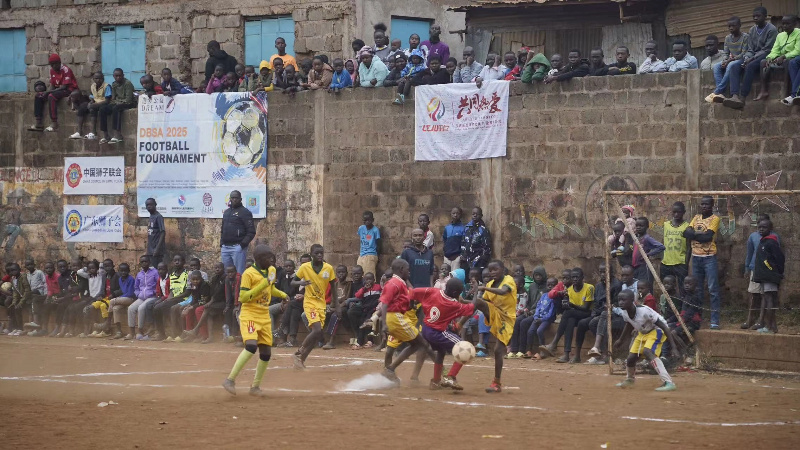 作為傳統(tǒng)重頭戲,本屆足球賽事的規(guī)模再創(chuàng)新高,共有24所社區(qū)學校的47支隊伍,在 94場激烈角逐后決出勝負。決賽現(xiàn)場氣氛熱烈,座無虛席。中國駐肯尼亞大使館在賽后舉辦的趣味“顛球比賽”環(huán)節(jié)更是吸引了眾多高手一展身手。