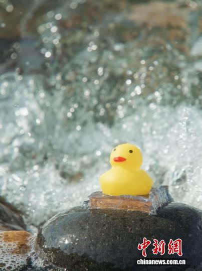 本項研究開發(fā)出的水凝膠將一只橡膠鴨粘在海洋中的巖石上進行測試(圖片來自論文作者)。施普林格·自然 供圖