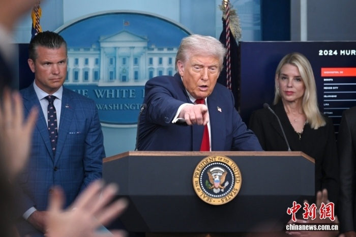 當?shù)貢r間8月11日,華盛頓,美國總統(tǒng)特朗普在白宮召開記者會。中新社記者 陳孟統(tǒng) 攝
