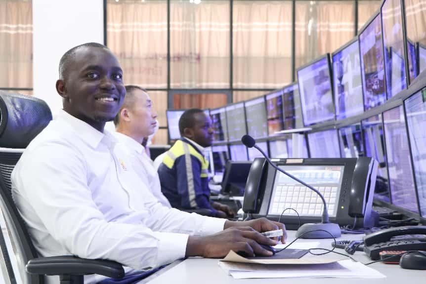 在蒙內(nèi)鐵路調(diào)度中心,本地調(diào)度員克林頓·奧巴雷與中國調(diào)度員張興華共同進(jìn)行列車調(diào)度指揮工作。非洲之星鐵路運(yùn)營有限責(zé)任公司供圖