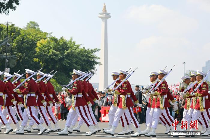 8月17日,印尼儀仗隊(duì)參加獨(dú)立日慶典。中新社記者 李志全 攝