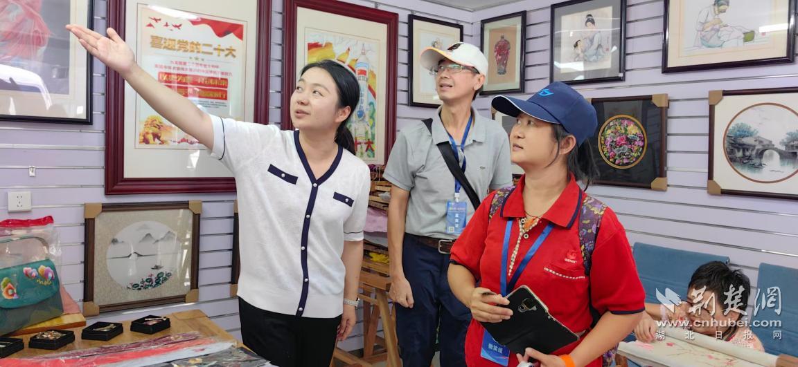 臺灣嘉賓一行先后參觀了武漢市殘疾人藝術館的手工藝剪紙創(chuàng)作和漢繡傳承基地、殘疾人文聯(lián)書法篆刻和文化傳媒工作室,以及“文脈新聲?墨韻星河”聽障人士藝術作品展。參觀過程中,他們深入了解了武漢本地殘障藝術文化的特色與發(fā)展成果,對剪紙、漢繡等傳統(tǒng)文化技藝贊嘆不已。
