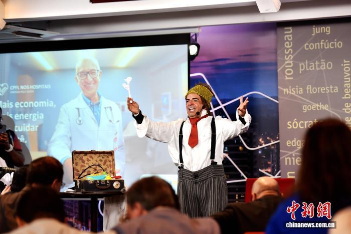 當?shù)貢r間8月19日,巴西圣保羅州坎皮納斯,“小丑醫(yī)生”費爾南多·桑迪在活動現(xiàn)場引導嘉賓傾訴煩惱。記者 林春茵 攝