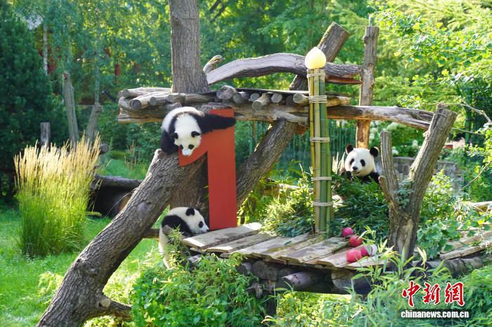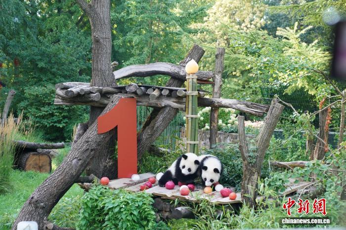 中新社柏林8月22日電(記者 馬秀秀)紅色木制“1”字、以甜菜根和胡蘿卜汁為原料的冰彈珠、竹子生日蠟燭......當(dāng)?shù)貢r(shí)間22日,旅德大熊貓雙胞胎“夢(mèng)好”和“夢(mèng)甜”在柏林動(dòng)物園熊貓園的室外活動(dòng)場(chǎng)地上收獲了滿滿的生日驚喜。