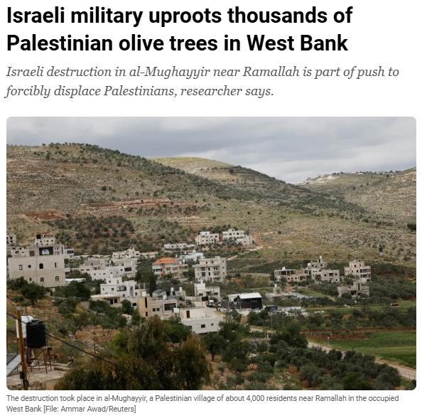 據(jù)介紹,橄欖樹是約旦河西岸巴勒斯坦民眾的重要農(nóng)作物,報道援引巴勒斯坦研究員哈姆扎·祖貝達特的話稱,“被拔除3000多株橄欖樹的這片區(qū)域,是拉姆安拉地區(qū)最肥沃的地區(qū)之一?!?/p>