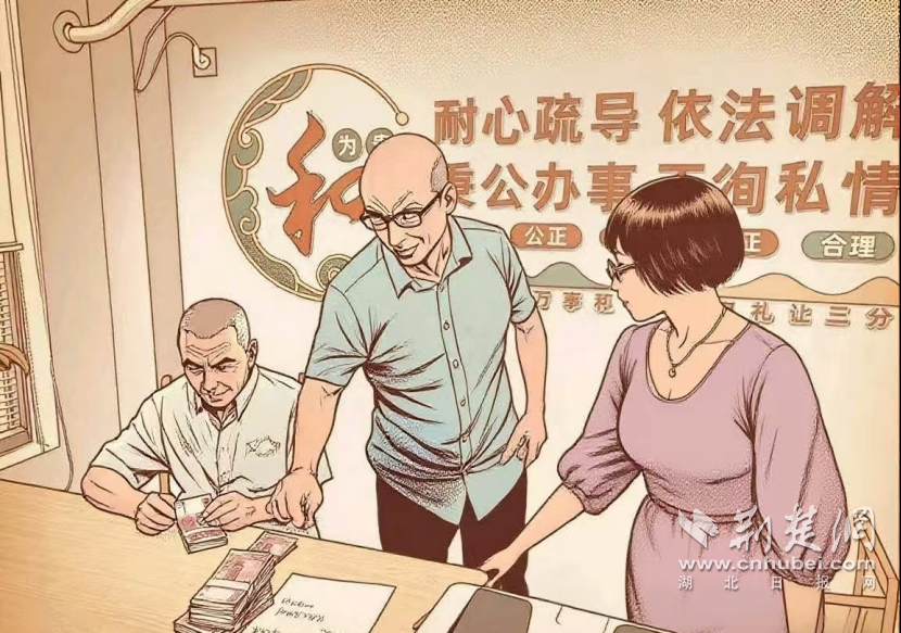 譚文芳組織雙方當(dāng)事人調(diào)解,案件當(dāng)場履行。(圖為AI生成真實(shí)場景)