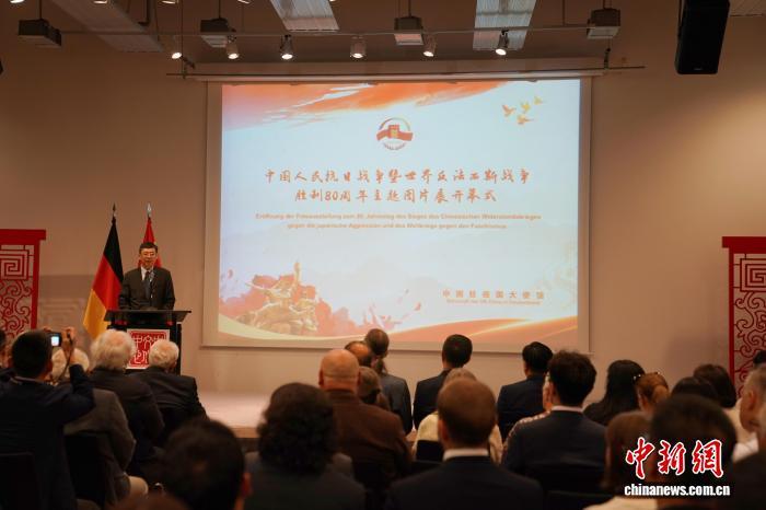 中新社柏林8月27日電 (記者 馬秀秀)紀(jì)念中國(guó)人民抗日戰(zhàn)爭(zhēng)暨世界反法西斯戰(zhàn)爭(zhēng)勝利80周年圖片展26日晚在柏林中國(guó)文化中心開(kāi)幕。德各界人士、多國(guó)駐德使團(tuán)代表、華僑華人等150余人參加。