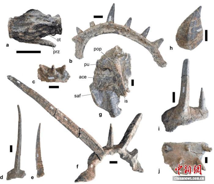 本項(xiàng)研究的甲龍化石部分后顱骨元素和皮膚裝甲(圖片來自論文)。施普林格·自然 供圖