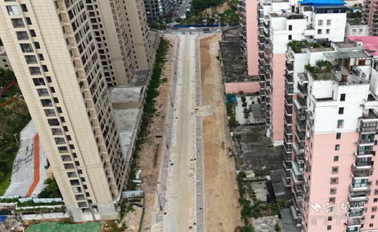 金鳳凰南路道路全長(zhǎng)215米,寬幅15米,北側(cè)順接壽昌大道,南側(cè)與育才路相交。截至目前,金鳳凰南路建設(shè)工程主體已完工,正在進(jìn)行綠化遷移工作。