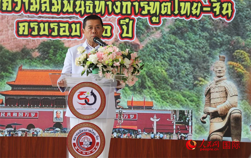 泰國前副總理兼泰中友好協(xié)會會長功·塔帕朗西致辭。人民網(wǎng)記者 簡承淵攝